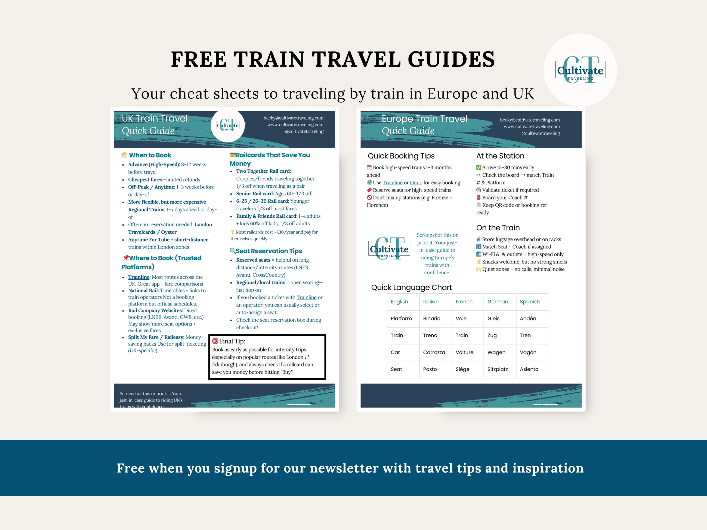 No spam. Just real-world travel tools from someone who gets it. The UK & Europe Train Cheat Sheet guides strike the perfect balance.